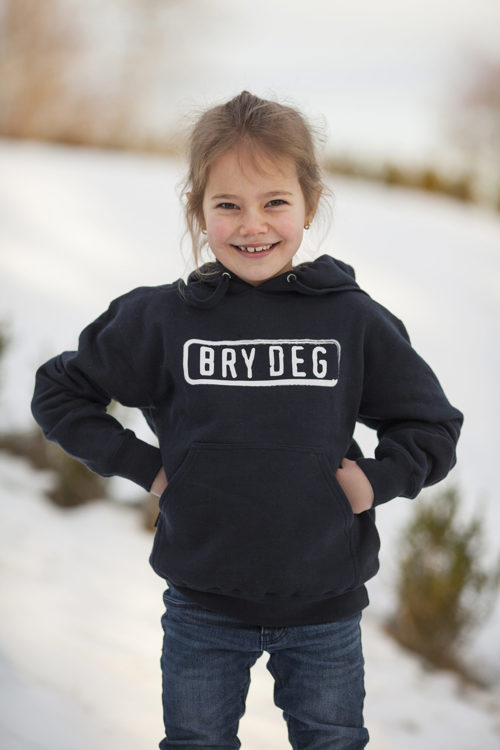 Hettegenser for barn med BRY DEG logo på bryst. Selges i fargene marine og gråmelert. Lycra i alle ribber. 80% bomull, 20% polyester 280g.